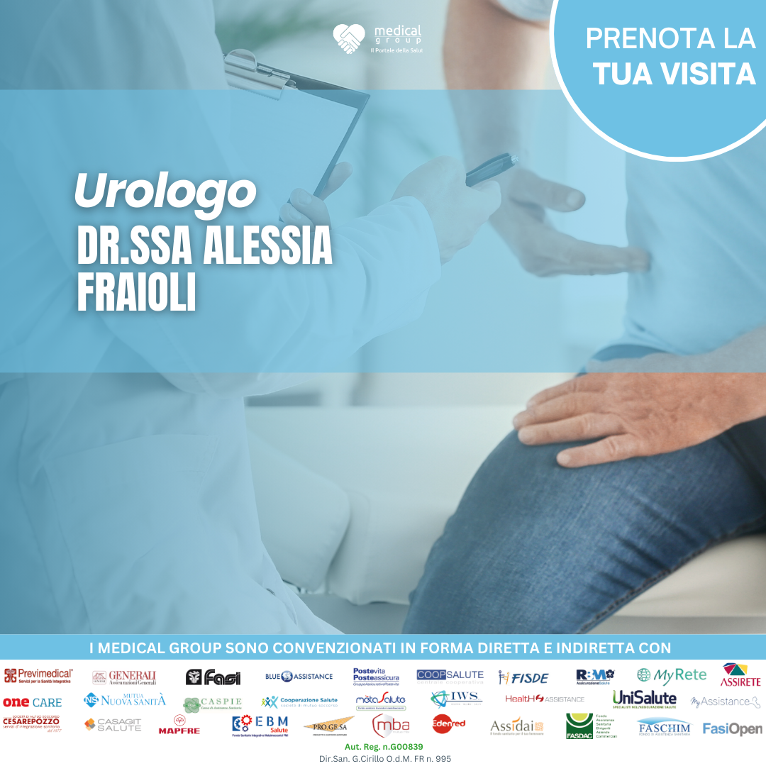 Prenota ora la Tua Visita Specialistica Urologica con la Dottoressa Alessia Fraioli , affidati ai Migliori Specialisti in Urologia in uno dei Centri del Medical Group.